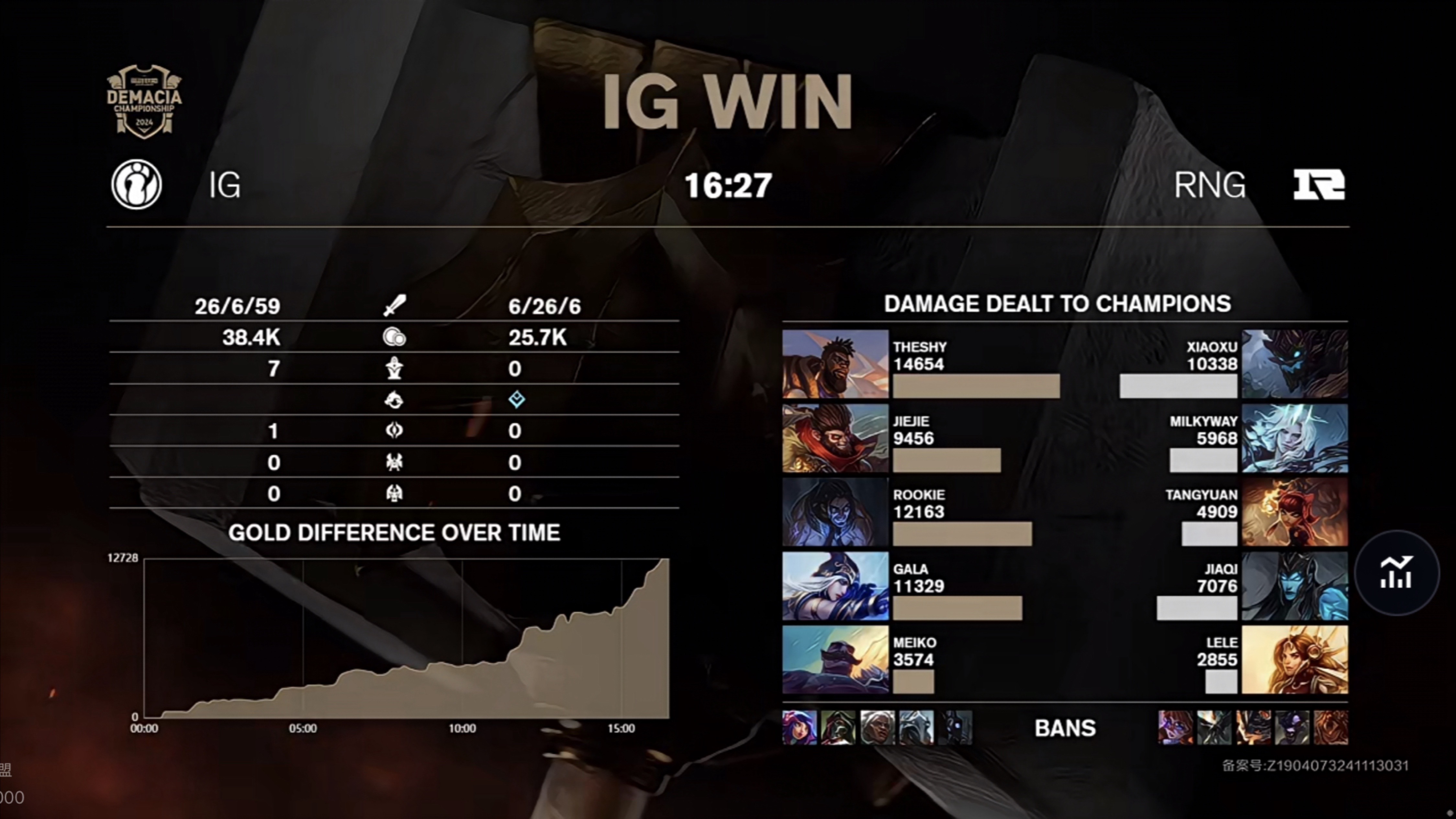 取得三连胜的情况下,英雄联盟官方宣布因延迟影响釜山现场参赛队伍体验,对RNG出赛的所有三场比赛进行重赛本次重赛事件引起热议,而RNG积极配合赛事方安排,在重赛中依然三战全胜,并最终克服线上比赛等一系列不利条件获得本次MSI冠军这也是LPL赛区获得的第四个。二SKT战队F